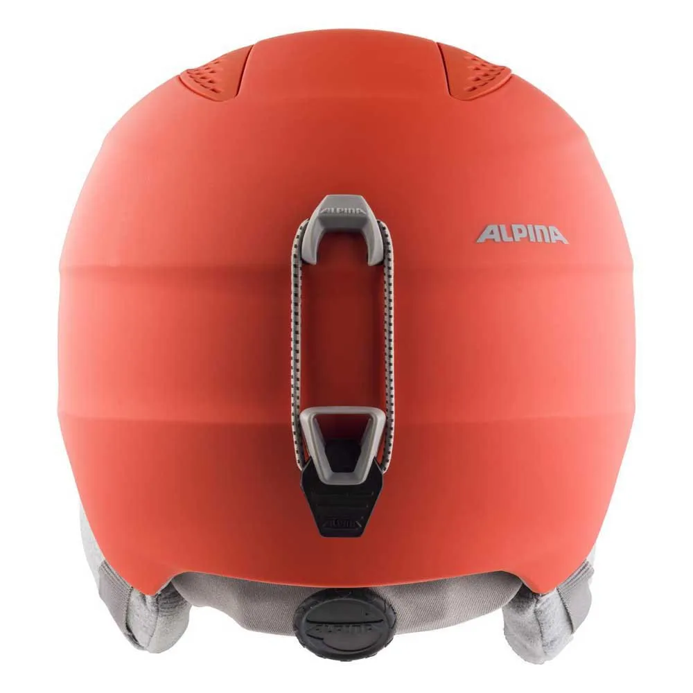 – Proven a hundred thousand times over and used on all Alpina helmets: the strap buckle with the red push button and multi-step automatic locking mechanism. Ergomatic can be operated with one hand – you can loosen the strap on the way up the mountain and tighten it for downhill – and in a fall the locking mechanism cannot open automatically.
